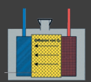 Gaz powstający przy ładowaniu (maks. 14, 4 V) jest odprowadzany porami we włóknie szklanym do elektrody ujemnej, gdzie znów zamienia się w wodę - dlatego ten proces nazywany jest rekombinacją. Wynik: strata wody jest wykluczona. Oprócz tego płyty elektrod są poprzez zestaw komprymowany dociśnięte tak mocno, że nie może dojść do sedymentacji. Wynik: wysoka odporność na rozładowania i długa żywotność.