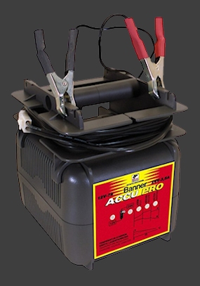 ŁADOWARKA BANNER ACCU PRO to w pełni zautomatyzowana ładowarka 12V i 24V o dużej mocy. Ta w pełni zautomatyzowana ładowarka 12V i 24V o dużej mocy wyposażona jest w serię zabezpieczeń eliminujących możliwość uszkodzenia akumulatora lub zagrożenie dlauż ytkownika. Dzięki 3 diodom LED można śledzić stan naładowania akumulatora przez cały czas cyklu ładowania. Nadaje siędo akumulatorów do kosiarek do trawy i wózków golfowych.