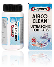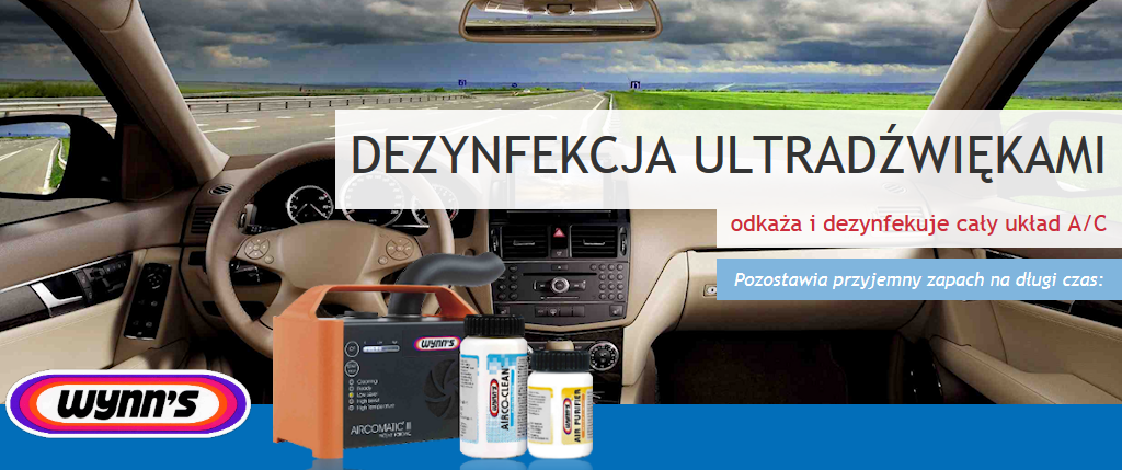 Odgrzybianie klimatyzacji metodą ultradźwiękową polega na rozpyleniu wewnątrz kabiny pojazdu specjalnego preparatu dezynfekującego w postaci mikroskopijnych kropelek (tzw. mgiełki ). Do tego celu używamy urządzenia Aircomatic III oraz specjalnego preparatu Airco-Clean belgijskiej firmy Wynn’s.