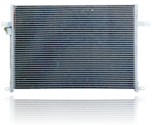 Skraplacz (kondensator) zwany również chłodnicą klimatyzacji jest wymiennikiem ciepła o bardzo dużej sprawności. Zlokalizowany jest z przodu samochodu przed chłodnicą, co dodatkowo zwiększa stopień efektywności jego działania. Działanie skraplacza polega na szybkim odbieraniu ciepła ze strumienia gazów (czynnika chłodniczego) za pomocą opływającego przez niego powietrza. Powietrze z zewnątrz przenikając przez skraplacz pobiera ciepło powodując ochłodzenia czynnika mającego postać gazu. Czynnik chłodniczy zmienia wówczas stan z gazowego na ciekły w wyniku kondensacji czyli skraplania, a następnie w postaci płynnej zostaje odprowadzony ze skraplacza. Działanie skraplacza dodatkowo jest wspierane poprzez wentylator chłodnicy, który włącza się poprzez uruchomienie klimatyzacji lub w wyniku uzyskania określonego ciśnienia. Należy pamiętać, że zanieczyszczony skraplacz może ograniczać przepływ powietrza i być przyczyną zmniejszonego efektu chłodzenia.
